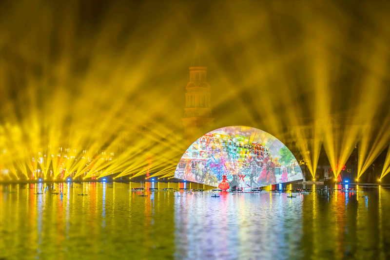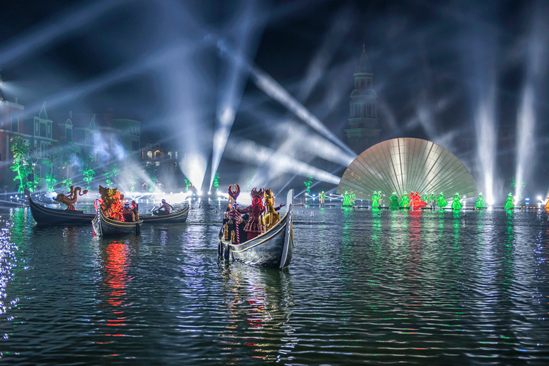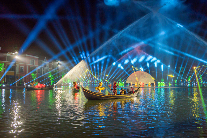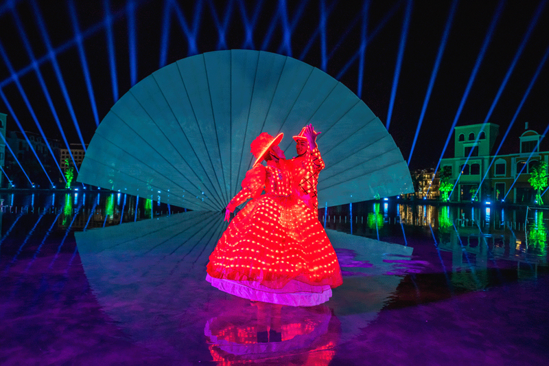 Bên cạnh đó, show còn có hiệu ứng công nghệ cao với hàng chục máy chiếu, ánh sáng, sân khấu nước và hàng trăm diễn viên chuyên nghiệp, đưa du khách trở về thời ấu thơ với những câu chuyện về “Thiện – Ác”, những chàng hoàng tử, nàng công chúa và phù thuỷ.