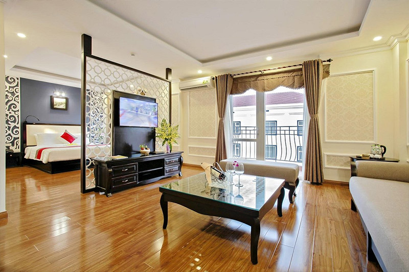 Không gian tại các phòng được bài trí rất bắt mắt cùng với nhiều tiện nghi cao cấp. Tất cả đều nhằm tạo lên sự tiện lợi, thoải mái nhất cho khách du lịch Hội An khi đến đây.