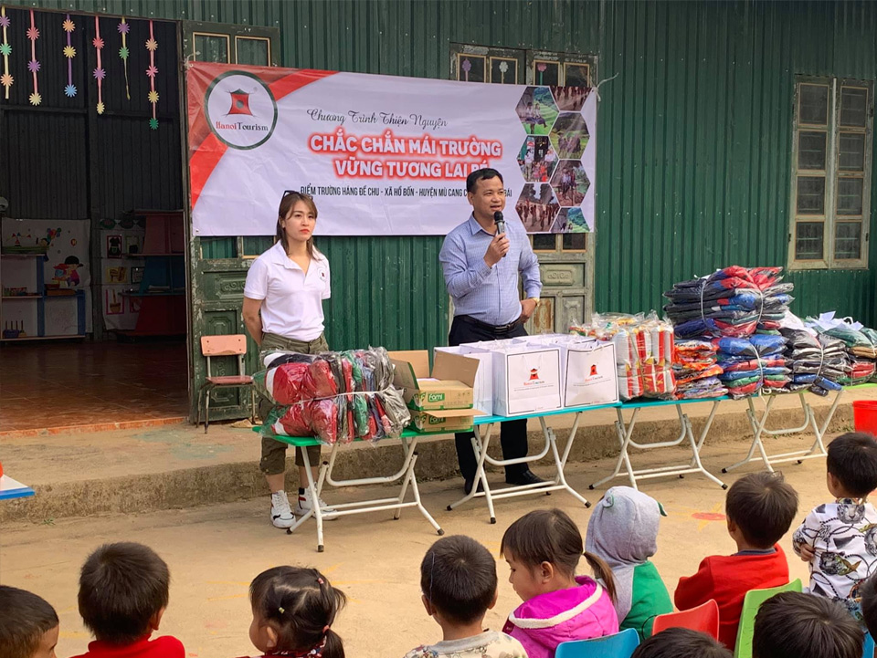 Hành trình thiện nguyện “Chắc chắn mái trường, vững tương lai bé” là dự án mà Hanoi Tourism thực hiện nhằm cải tạo hiện trạng cơ sở vật chất tại điểm trường mầm non Háng Đề Chu – bản Háng Đề Chu, xã Hồ Bốn, huyện Mù Cang Chải – tỉnh Yên Bái.