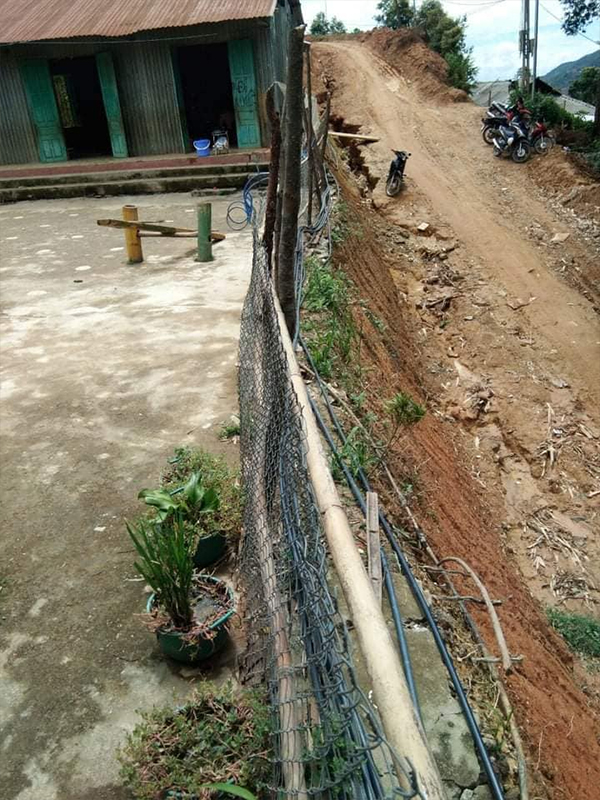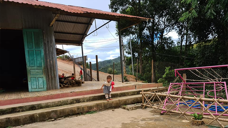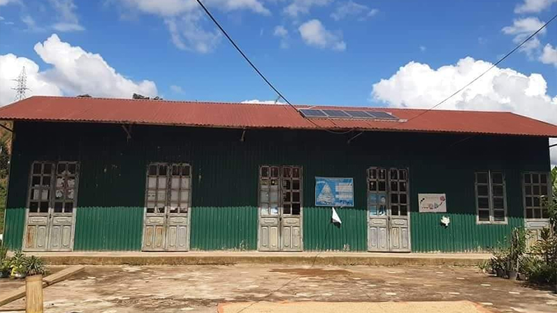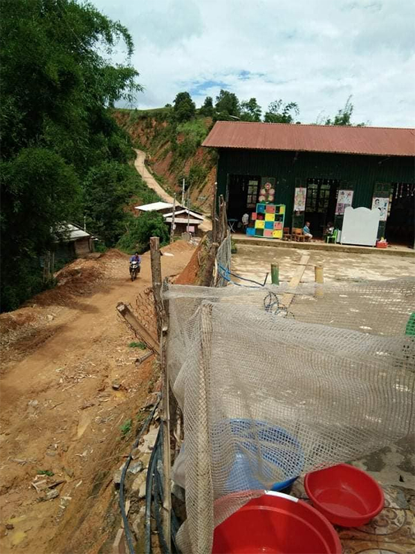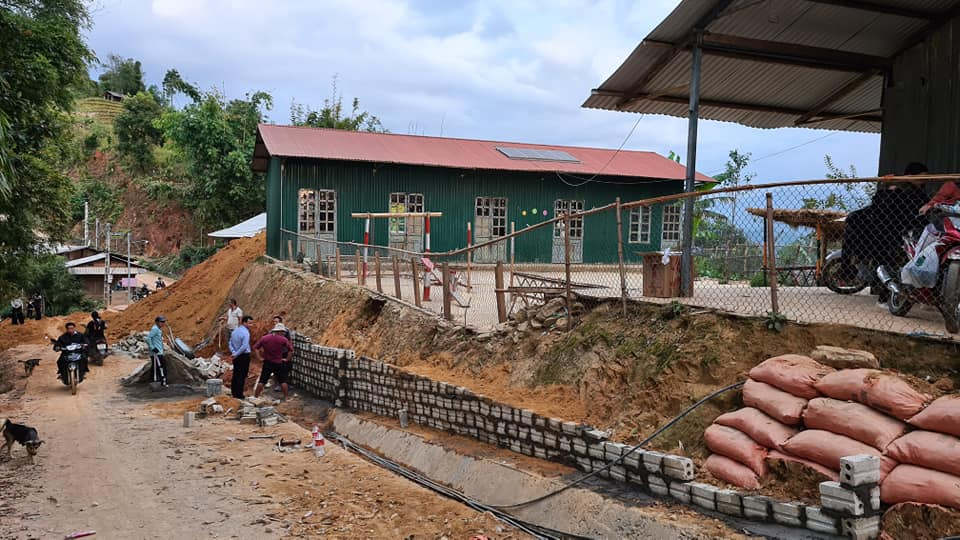 Ngôi trường này hiện đang tiếp nhận gần 60 cháu bé thuộc lứa tuổi mầm non và nằm trên một ngọn đồi nhỏ. Toàn bộ vách và mái nhà chỉ được quây bằng vài tấm tôn mỏng, đã dần hoen gỉ. Gần 60 bé, nhưng trường lại chỉ có 1 nhà vệ sinh duy nhất cũng đã hỏng từ lâu mà chưa có kinh phí để sửa chữa khắc phục. Đáng lo ngại hơn nữa là phần đất nền của quả đồi – nơi ngôi trường được dựng lên đã bắt đầu sạt lở và xuất hiện nhiều vết nứt lớn, có nguy cơ sụp đổ bất cứ lúc nào. Mái ấm, sự an toàn và tương lai của các bé đang không được đảm bảo.