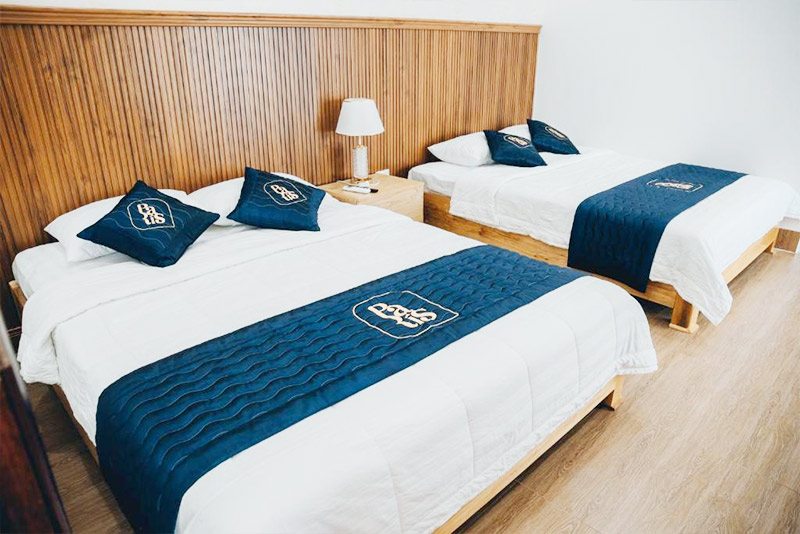 Các căn phòng tại đây không chỉ đầy đủ thiết bị mà còn có cửa sổ lớn, hướng ra không gian xanh xung quanh, mang lại cảm giác thư giãn và yên tĩnh cho khách du lịch Bình Thuận lưu trú lại.